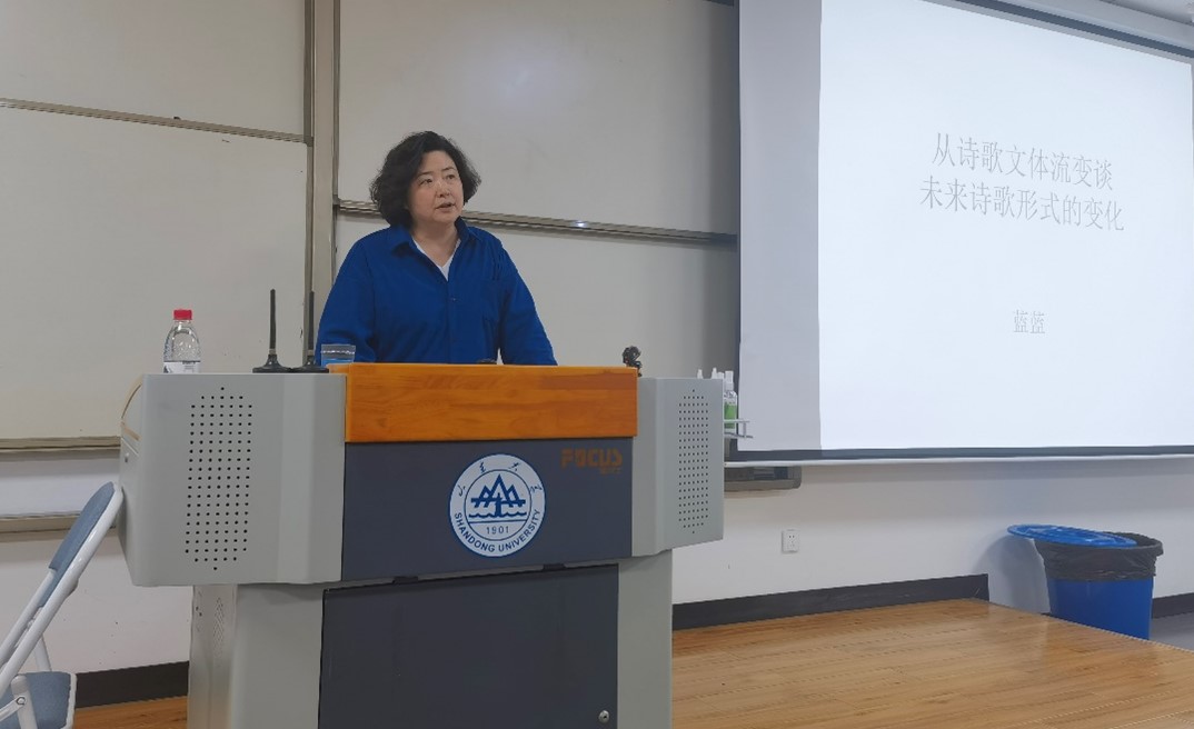 10月23日晚六点半,著名诗人蓝蓝应邀做客beat365唯一官方网站名师大讲堂,主讲题为“从诗歌文体流变谈未来诗歌形式的变化”的学术报告。beat365唯一官方网站亚思明教授主持报告会,学院师生共同聆听了此次讲座。