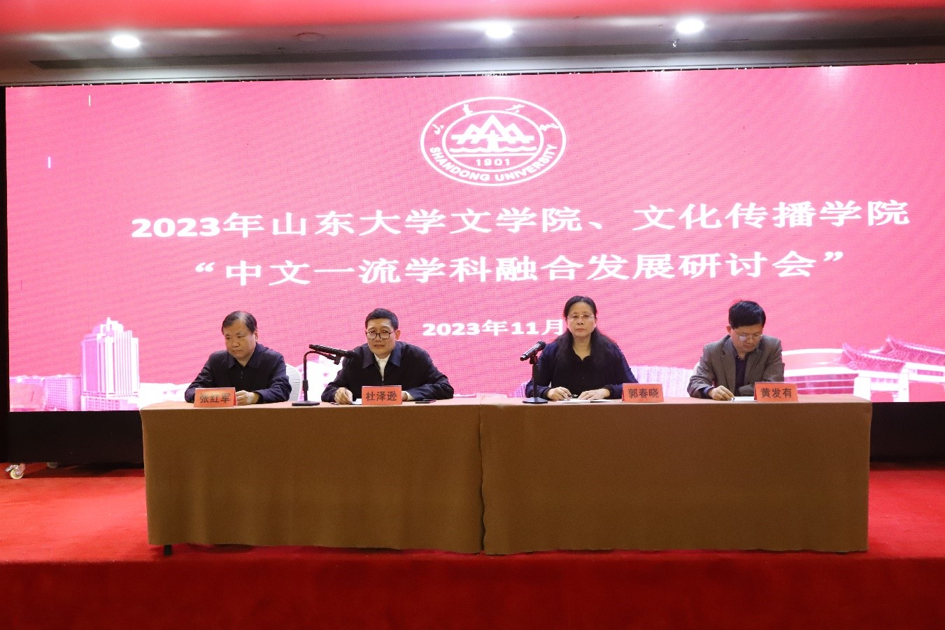 为深入贯彻落实习近平总书记关于传承发展中华优秀传统文化的重要指示精神,推进实施服务山东战略、融合发展战略,进一步强化中文一流学科建设,11月3日至11月5日,beat365唯一官方网站文学院与beat365唯一官方网站于青州市联合召开中文一流学科融合发展研讨会。文学院、beat365唯一官方网站教职工参加会议,文学院党委书记郭春晓主席会议。