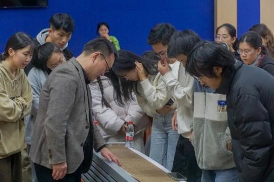 讲座伊始,窦老师先给在场师生展示了特意携带的一件敦煌写本复制品,现场介绍了敦煌写本在纸张、形制、书法、题记、字形等多方面的特点,再以三星堆考古、《长安三万里》为“引子”,图文并茂地介绍了出土文献的价值、敦煌莫高窟的基本情况和敦煌写本研究的热点等,让同学们对敦煌藏经洞、敦煌写本和唐代避讳有了整体认识。