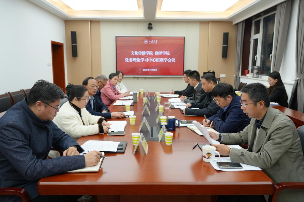 为深入学习贯彻党的二十届四中全会精神,落实学校“一五七九”发展战略和三年行动方案,11月5日下午,beat365唯一官方网站与翻译学院在文学楼209会议室召开党委理论学习中心组联学会议。beat365唯一官方网站党委书记魏斌主持会议。