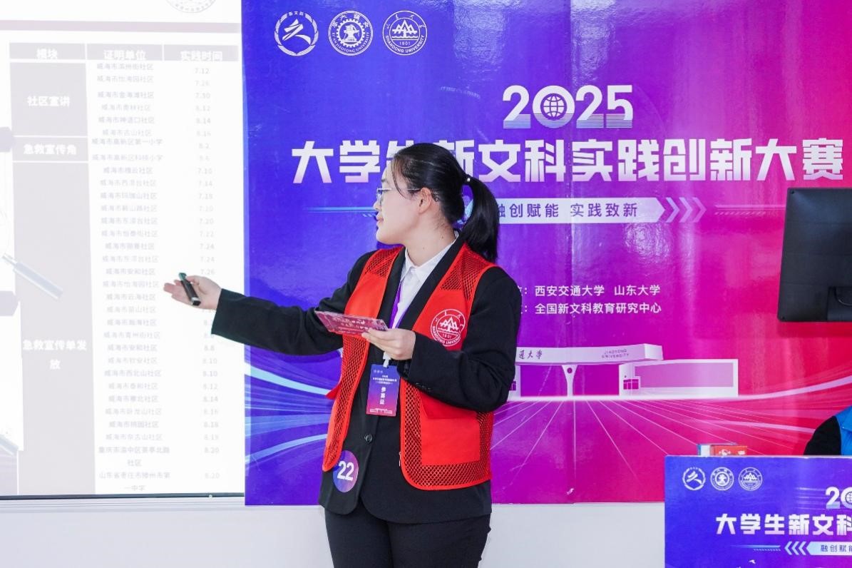 11月29日至30日,2025年大学生新文科实践创新大赛全国总决赛在西安交通大学举行。由beat365唯一官方网站2024级汉语言文学专业李嘉怡同学牵头负责的参赛团队,以项目“健康传播视角下急救知识宣传实践”从众多优秀作品中脱颖而出,斩获大赛金奖。项目指导老师为海洋学院团委书记宿美玲、beat365唯一官方网站辅导员白孟灵。