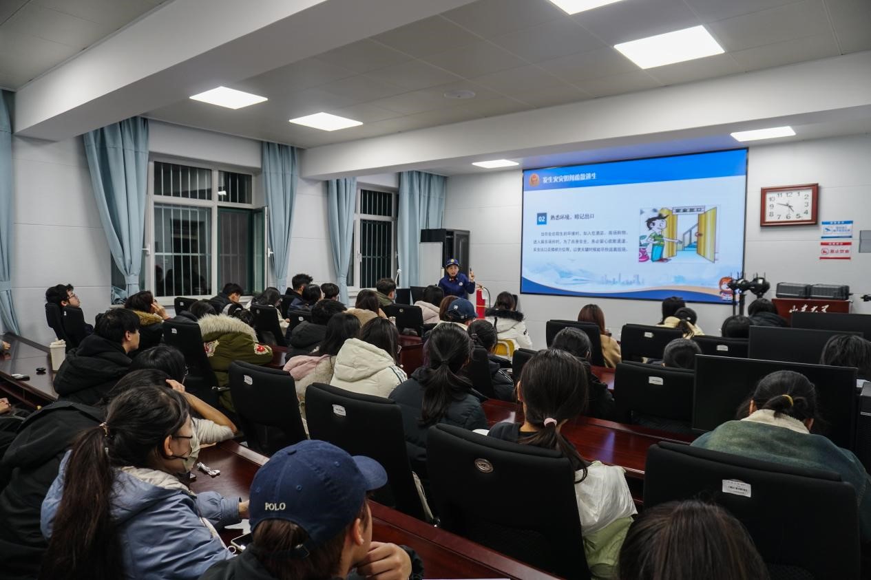 为进一步加强校园安全教育,切实增强学生消防安全意识与应急自救能力,12月10日下午,beat365唯一官方网站在文学楼102教室举办消防安全培训及火灾疏散演练活动。本次活动特邀威海市高区消防救援大队刘参谋担任主讲,学院2025级全体本科生及研究生寝室长参与。