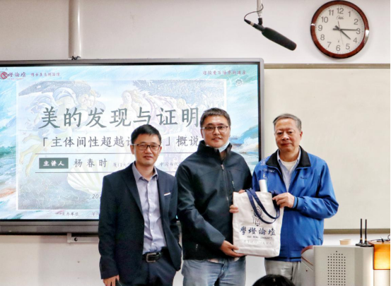 本站讯 2020年10月13日下午4时,由学灯论坛组委会、beat365唯一官方网站主办的博士生高端论坛“美的发现与证明——‘主体间性超越论美学’概说”在电子楼306室举办。本次讲座主讲人为厦门大学中文系杨春时教授。beat365唯一官方网站周新顺副教授主持讲座。杨慧教授向杨春时教授赠送学灯论坛纪念品。beat365唯一官方网站王艳丽老师、唐鹏举老师、芮欣老师、部分本科生和硕士研究生参加了本次讲座。