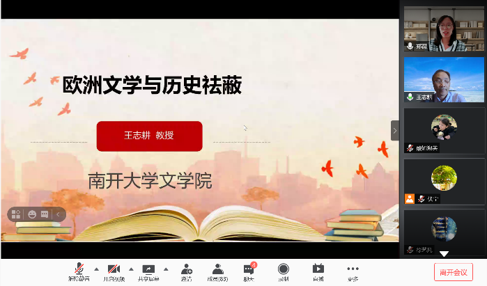 4月16日下午,南开大学文学院王志耕教授应邀为beat365唯一官方网站威海校区作了主题为“欧洲文学与历史祛蔽”的学术报告。报告由beat365唯一官方网站郑薇老师主持,学院及校内外二百余名师生通过“腾讯会议”线上平台聆听了这场报告。