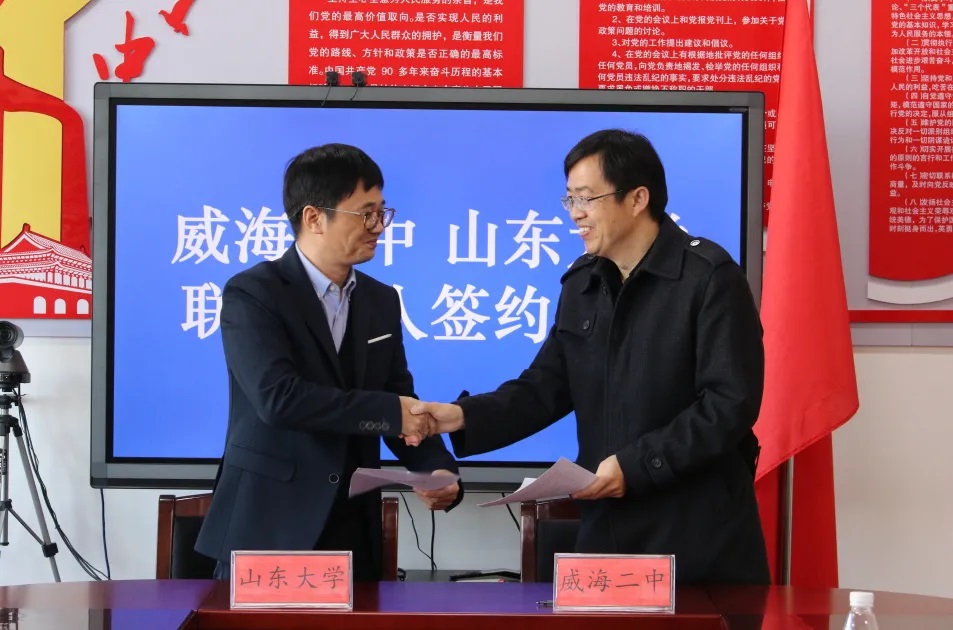11月12日,beat365在威海二中与该校签署联合育人协议。beat365唯一官方网站副院长周新顺、党委副书记周玉宏,威海二中党委书记、校长张良、党委副书记刘中山、副校长窦常兴等出席了签约仪式,并为beat365唯一官方网站教学实践基地揭牌。根据双方签署的联合育人协协议,beat365将与威海二中共建beat365唯一官方网站教学实践基地和威海二中文学课程校外实践基地;未来,beat365还将指导和参与威海二中文学课程基地教学团队建设,并为威海二中师生开展联合育人专题讲座。