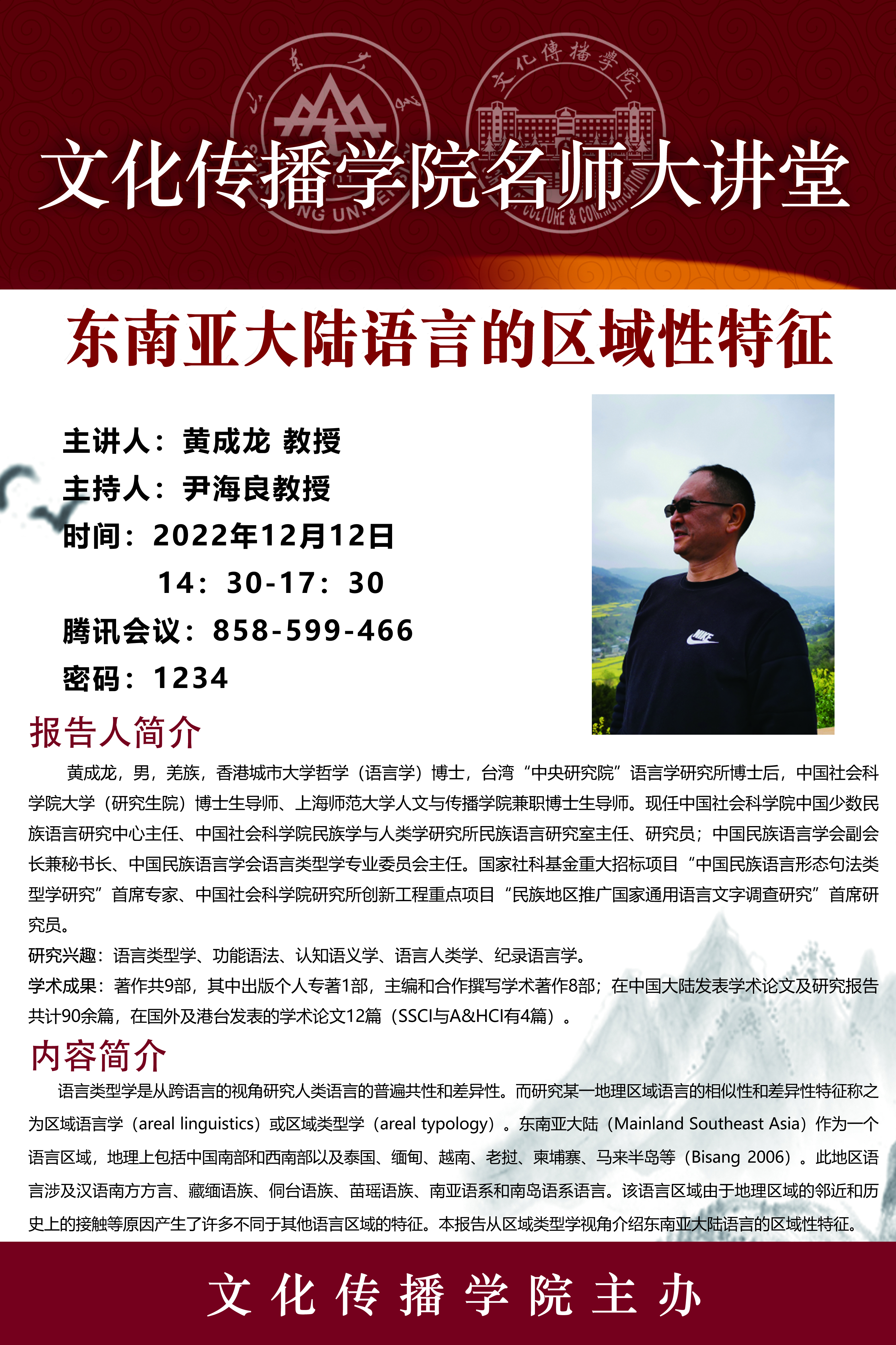 报告人:黄成龙 教授
