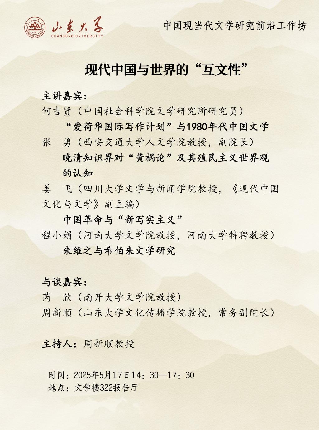 [讲座预告]现代中国与世界的“互文性”