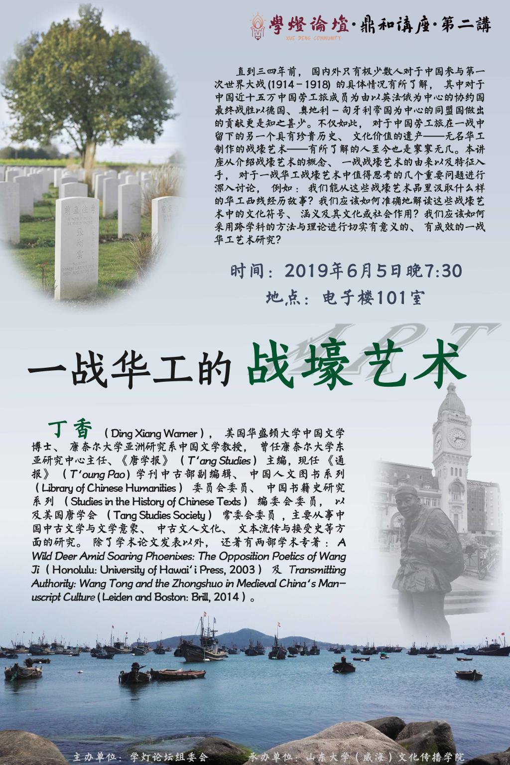 直到三四年前,国内外只有极少数人对于中国参与第一次世界大战 (1914–1918)的具体情况有所了解,其中对于中国近十五万中国劳工旅成员为由以英法俄为中心的协约国最终战胜以德国、奥地利-匈牙利帝国为中心的同盟国做出的贡献更是知之甚少。不仅如此,对于中国劳工旅在一战中留下的另一个具有珍贵历史、文化价值的遗产——无名华工制作的战壕艺术——有所了解的人至今也是寥寥无几。本讲座从介绍一战壕艺术的概念、一战战壕艺术的由来以及特征入手,对于一战华工战壕艺术中值得思考的几个重要问题进行深入讨论,例如:我们能从这些战壕艺术品里汲取什么样的华工西线经历故事?我们应该如何准确地解读这些战壕艺术中的文化符号、涵义及其文化或社会作用?我们应该如何采用跨学科的方法与理论进行切实有意义的、有成效的一战华工艺术研究?