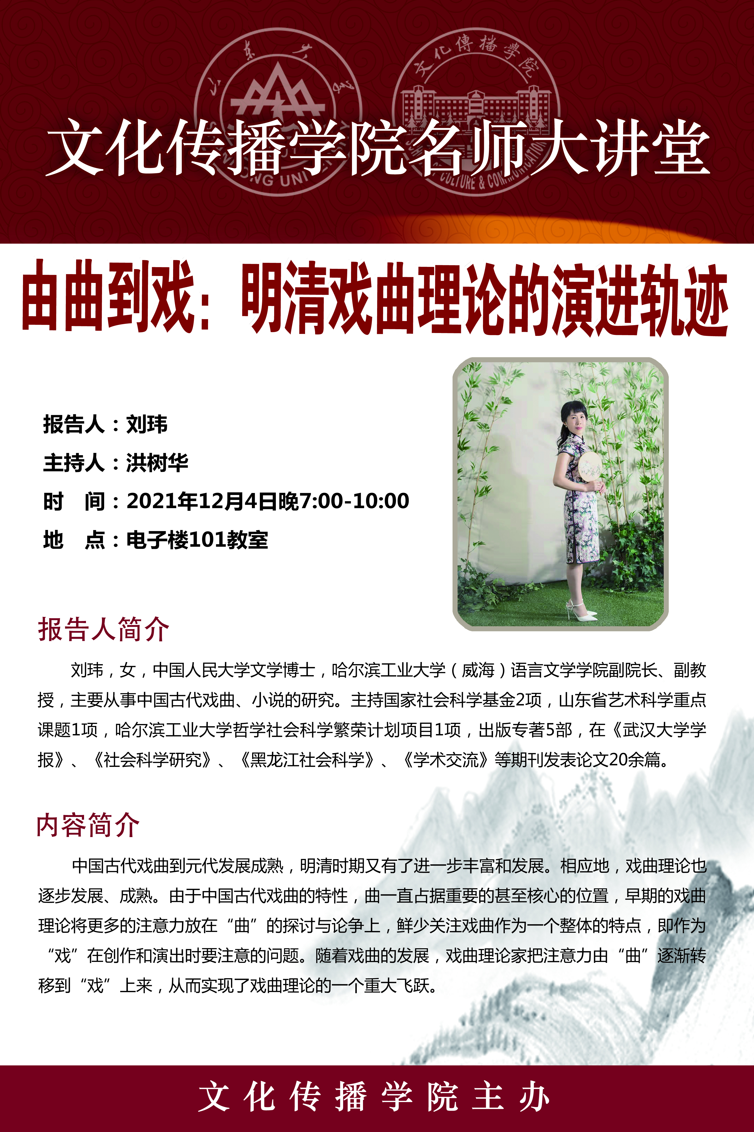 刘玮,女,中国人民大学文学博士,哈尔滨工业大学(威海)语言文学学院副院长、副教授,主要从事中国古代戏曲、小说的研究。主持国家社会科学基金2项,山东省艺术科学重点课题1项,哈尔滨工业大学哲学社会科学繁荣计划项目1项,出版专著5部,在《武汉大学学报》、《社会科学研究》、《黑龙江社会科学》、《学术交流》等期刊发表论文20余篇。