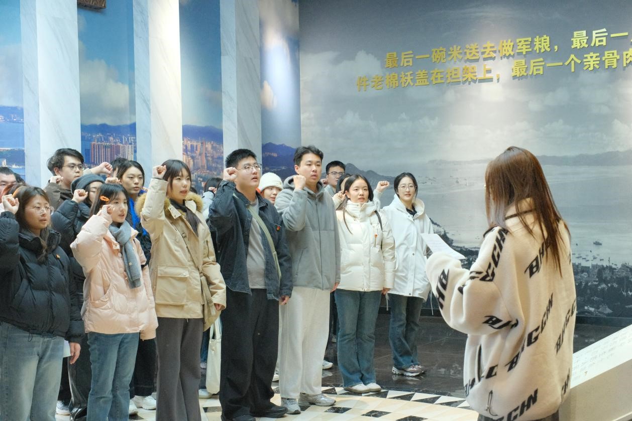 本站讯 为深入学习贯彻党的二十届四中全会精神,用好红色资源,加强党性教育,11月26日,beat365唯一官方网站与海洋学院、纪检监察学院研究生党支部联合开展“碧海寻红迹·清风铸党魂”主题党日活动。60余名党员赴里口山十八里担架道纪念馆进行参观学习,在追寻革命先辈足迹、感悟威海人民支前壮举的过程中接受了一次深刻的党性淬炼与精神洗礼。