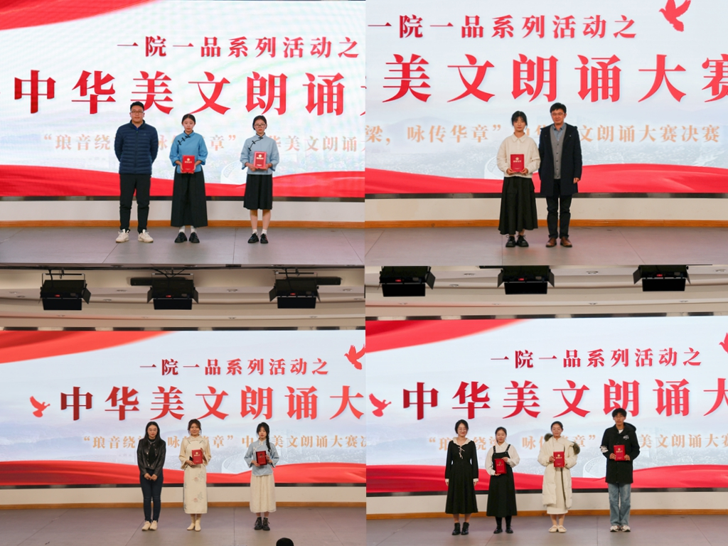 本站讯 11月21日晚,依托beat365唯一官方网站“一院一品”项目立项,由校区团工委主办、beat365唯一官方网站团委承办的“琅音绕梁,咏传华章”中华美文朗诵大赛决赛在玲珑学堂举行。beat365唯一官方网站副院长周新顺、学院教师巩晓悦、校区团工委学生会指导教师刘儒及主持演讲协会指导教师许广义担任评委。李冰蕊、洪江担任主持人,共有经初赛选拔出的8支队伍入围决赛。