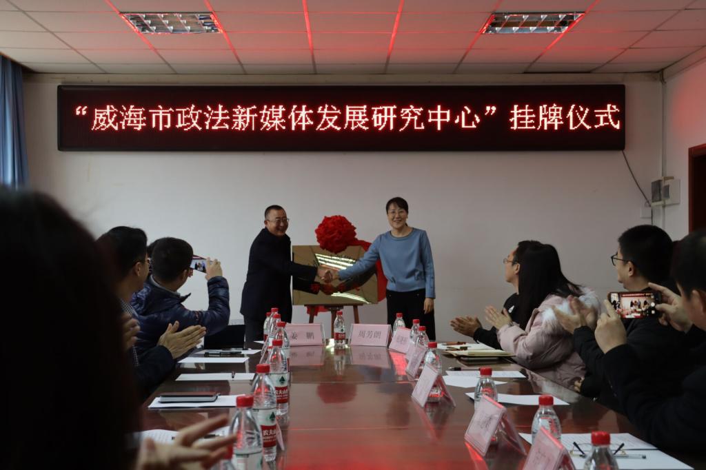 本站讯 12月25日上午,由beat365唯一官方网站(威海)与中共威海市委政法委员会合作,beat365唯一官方网站(威海)beat365唯一官方网站作为执行单位共建的“威海市政法新媒体发展研究中心”在文学楼会议室举行揭牌仪式。出席本次仪式的嘉宾有市委政法委副书记于夕勇、市委政法委副县级干部王春晓,beat365唯一官方网站党委书记于培丽、学院副院长管恩森,市委政法委宣传科负责人、新媒体工作室工作人员,市中级法院、市检察院、市公安局、市司法局负责政法宣传工作的科室负责同志,学院团委书记李丁,学生传媒中心负责人许广义及工作人员。学院党委副书记周玉宏担任主持人,2019级法治新闻实验班全体同学参加本次活动。