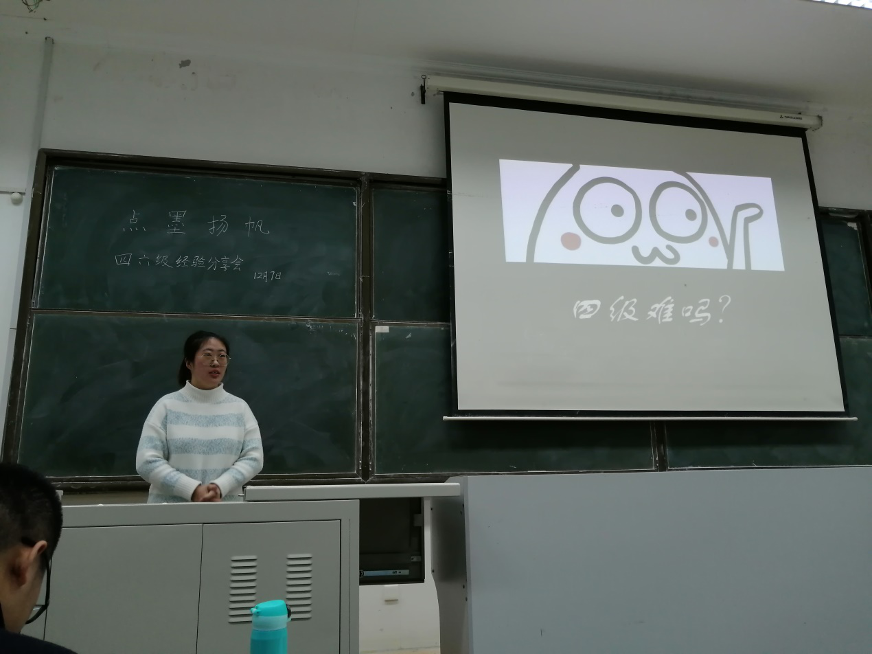 本站讯 12月7日晚,beat365唯一官方网站“点墨扬帆”互助团队于图东教学楼108室举办了四六级考试经验分享会。2018级汉语言文学专业的朱亚楠、周欢和张梦凡担任主讲人。“点墨扬帆”团队全体成员与beat365部分同学到场参与了此次活动。