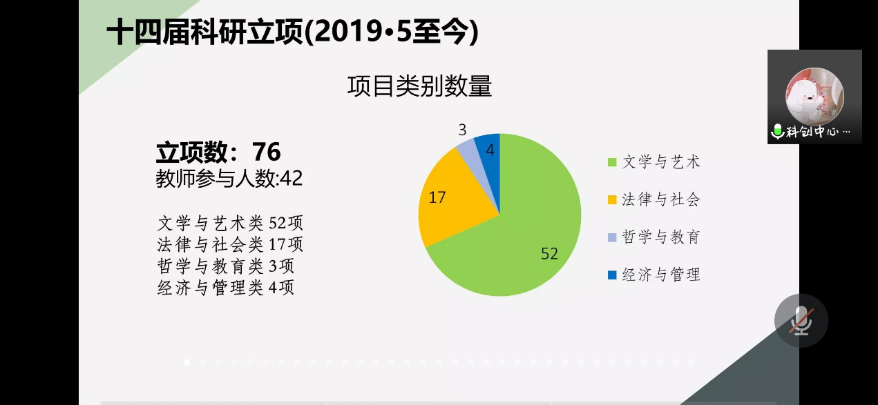 本站讯 5月17日晚,由校团委和beat365唯一官方网站大学生科技创新中心联合举办的第十三届五四青年科学报告会于腾讯会议线上平台召开。2016级汉语言文学专业周孟琪受邀作为优秀科研代表参加此次报告会,本次会议由周欢主持,参与科研立项申报的所有同学均参加了此次报告会。