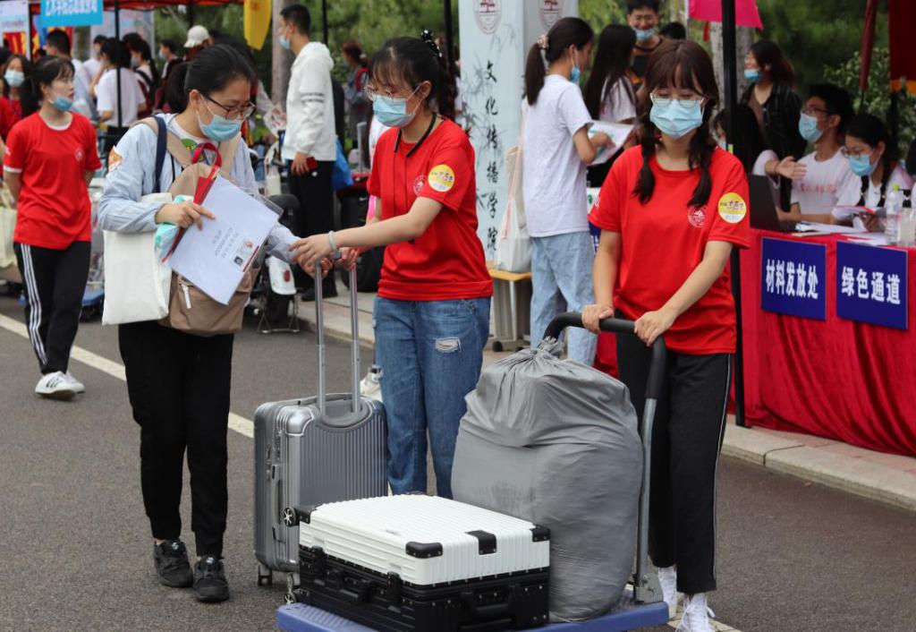 为做好迎新工作,学院明确迎新流程,细化迎新服务,落实学校关于疫情防控的相关部署。9月11日中午,beat365唯一官方网站2020级新生报到工作正式开始,校区南门设置各个学院引导点。由于疫情,为保障师生健康安全,将由志愿者协助新生完成报到相关流程。报到期间,学院迎新摊位的工作人员收取新生核酸报告,进行人脸识别并发放校园一卡通、迎新手册和安全手册等材料,还为新生提供绿色通道等服务。新生完成报到后,志愿者还将新生引导到宿舍楼和体检处。院学生传媒中心的相关人员采集迎新现场的照片,并录制了视频。所有工作人员着统一服装,分工明确,最大限度保证报到的顺利进行。