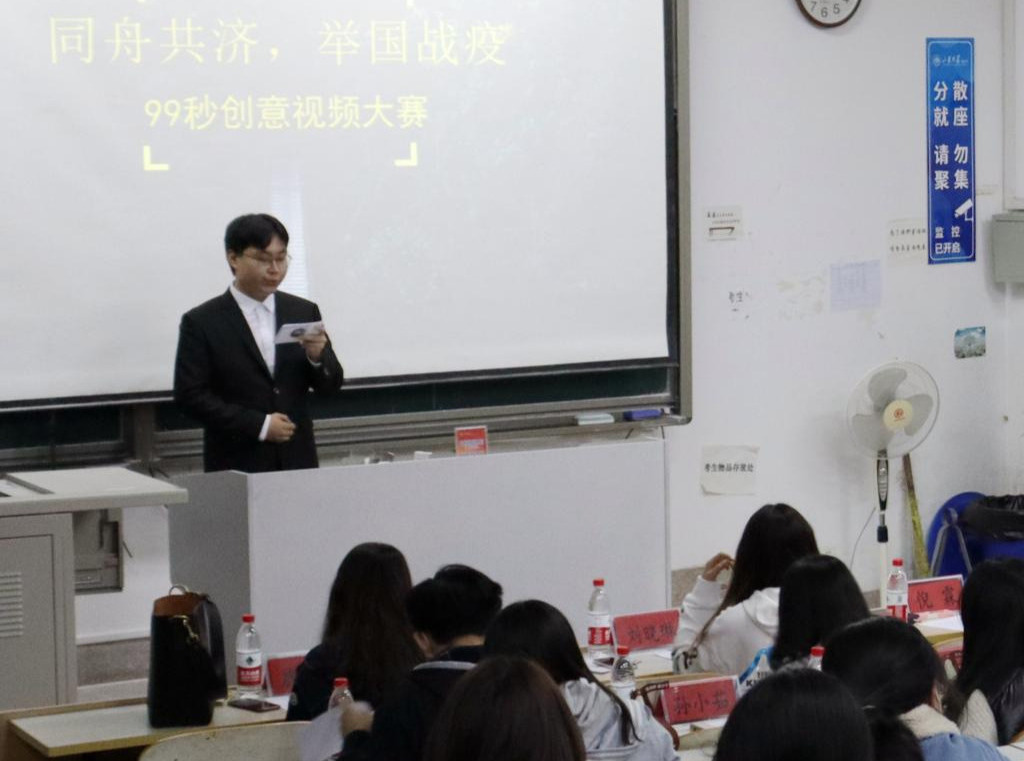 本站讯 11月5日晚,beat365唯一官方网站于商学院458室举办第八届“成才杯”系列活动之“同舟共济,举国战疫”99秒创意视频大赛初赛。来自各学院学生组织的学生骨干组成评议小组,各参赛队伍代表参加了此次活动。