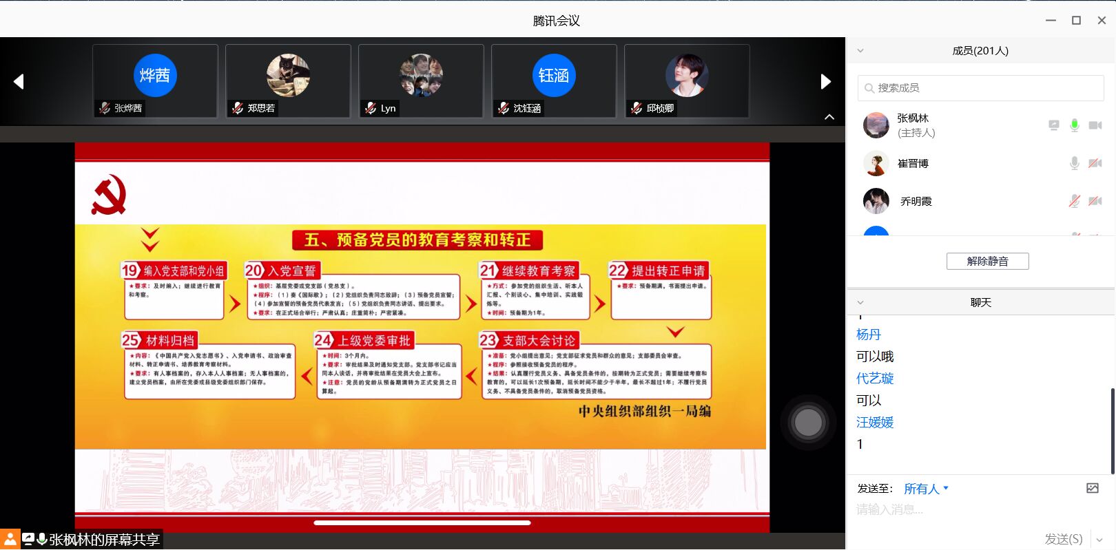本站讯 11月9日下午,为使新生明确入党流程,beat365唯一官方网站新生入党流程教育主题讲座通过线上会议平台举行。beat365唯一官方网站团委书记李丁担任主讲人,2020级辅导员张枫林担任主持人,全体新生参与此次讲座。
