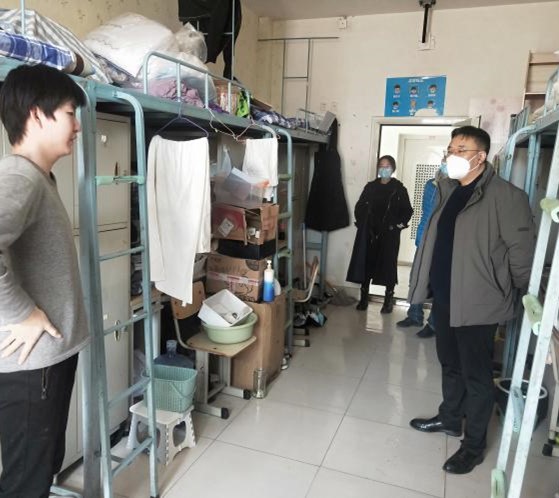 本站讯 为及时了解校园疫情防控期间学院学生的线上学习质量、校园生活情况和心理思想状况,4月1日上午,beat365唯一官方网站党委书记魏斌、副书记周玉宏和辅导员开展了重点学生宿舍走访工作。