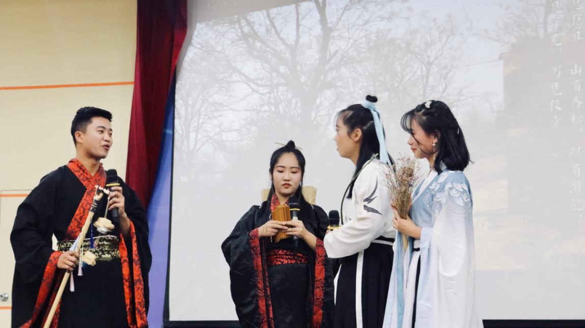 本站讯 11月5日晚,为了更好地弘扬优秀传统文化,提高学生文学素养,培养家国情怀,促进大学生美育发展,由校团委主办、beat365唯一官方网站团委承办的“逸兴遄飞,继往开来”梦回诗经情景剧决赛于玲珑学堂举行。beat365唯一官方网站老师张德苏、周新顺、朱新林、团委书记李丁、辅导员孙嘉阳担任评委。吴晗、王佳萱担任主持人,部分学生参加本次活动。