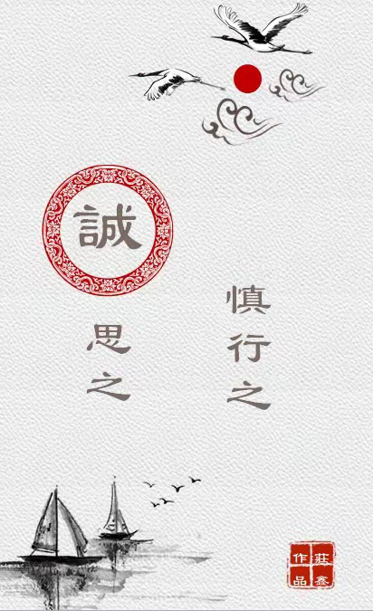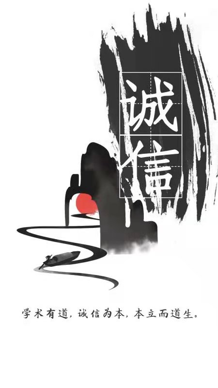 活动期间,参赛者以学术标语为载体围绕学术诚信这一主题展开创作,运用绘画、平面设计等创新形式,结合各自的专业特色展现对学术诚信的独到见解。其中,2019级中国现当代文学专业研究生徐冰月“‘乘’‘心’而来,‘束’亦有道”标语设计灵感来源于宫崎骏的动漫《哈尔的移动城堡》,标语中“乘心”谐音“诚信”,“束”谐音“术”,暗含着学术研究路上“诚信”是学者与“术业”之间契约的含义。2019级中国现当代文学专业研究生武俊宇“学术有道,诚信为本,本立而道生”的标语设计立足于学术诚信,并与中国古代书画相结合,“本”的核心释义为树干,“诚信”二字显现于黑色树干图形上,黑白分明,寓指其为是非之标准、好坏之准绳。人生犹如河流之上的行舟,跨越高山,向红日而往,唯有以“诚信”为座右铭,才能在这场求学之旅中不忘初心、不失方向。