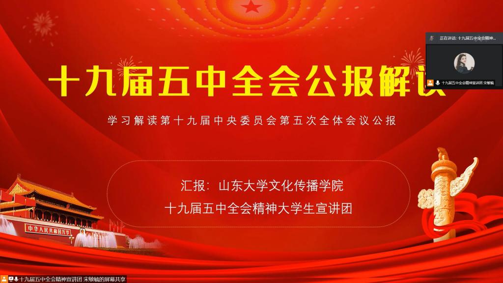 据悉,学习好、贯彻好、落实好全会精神,是当前和今后一个时期的重大政治任务。宣讲团成员准确把握核心要义,重点突出,既有理论高度,又有思想深度,对参会人员准确全面把握党的十九届五中全会精神具有重要意义。本次宣讲会有利于深入把握十九届五中全会所传达的政策意义及时代精神,为实现“十四五”规划和2035年远景目标做出山大贡献。
