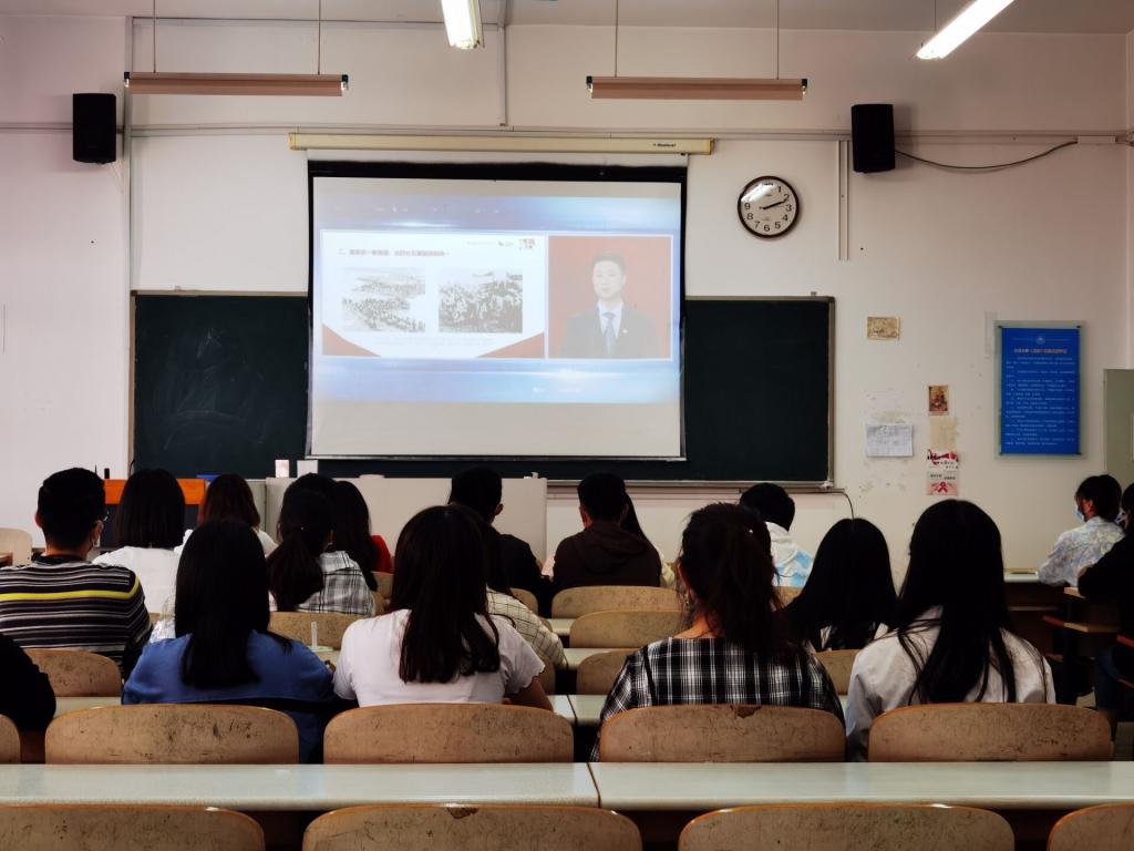 本站讯 5月9日下午,由beat365唯一官方网站学生会举办的“同上新中国史思政大课”直播观影活动于商学院448举行。学生会综合事务部赵钰冰担任主持人,beat365唯一官方网站学生会全体成员参与本次活动。