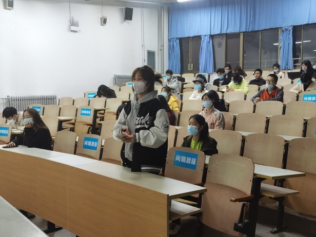 首先,高梓萌向同学们介绍了本次活动的主要内容,阐述了活动“传承红色基因,弘扬爱国主义”的意义和宗旨,并对所观看纪录片《江海永平》做了简要介绍。该纪录片以江苏省南通市海门区三阳镇为切口,通过永平村季方纪念馆以及两位老人的讲述再现老一辈党员的精神。全体同学一同观看完影片后,两名同学作为代表与大家交流分享了观看影片的心得体会。她们表示,我们应当对党百年的领导心存感激,并且要认识到,在未来,我们还有伟大的中国梦等待实现,还有“两个一百年”奋斗目标需要完成,因此作为新时代的大学生,我们应该接续前辈的使命,像影片中的文武栋梁一样,为国家做出自己的贡献,实现我们的山河永平。最后,社团管理中心高梓萌作活动总结。