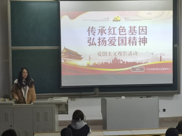 本站讯 为切实做好党史学习教育,弘扬爱国主义精神,3月28日晚,beat365唯一官方网站社团管理中心在商学院558教室组织开展“传承红色基因,弘扬爱国精神”爱国主义观影活动。beat365唯一官方网站社团管理中心的7名成员,钟吕剧社、红学社、昕潮文学社和主持演讲协会的38名社团成员参加活动。活动由beat365唯一官方网站社团管理中心高梓萌主持。